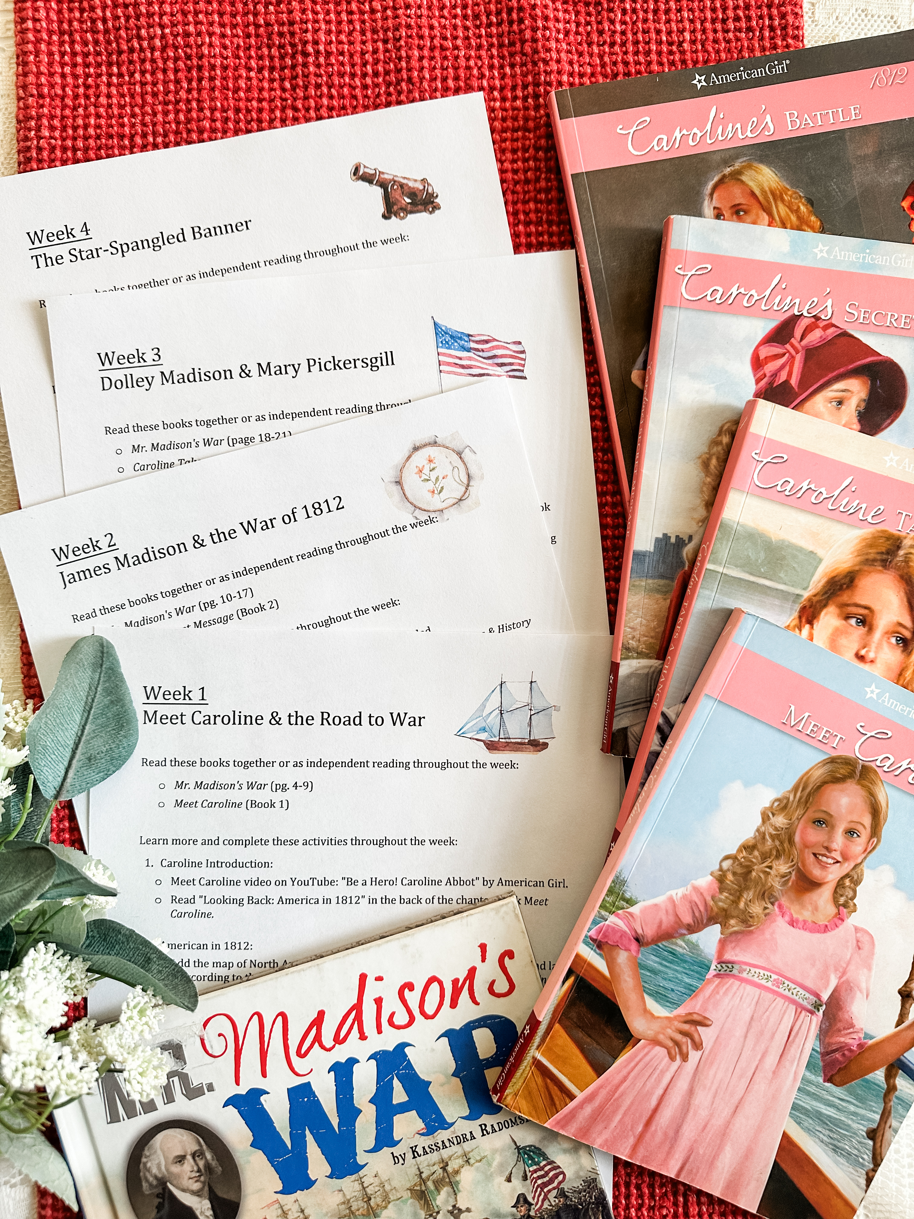 American Girl History with Caroline is a 4-week study learning what it was like to live during the War of 1812. You will learn about the causes and effects of the war, major battles, important figures, as well as how women and children carried on at home.