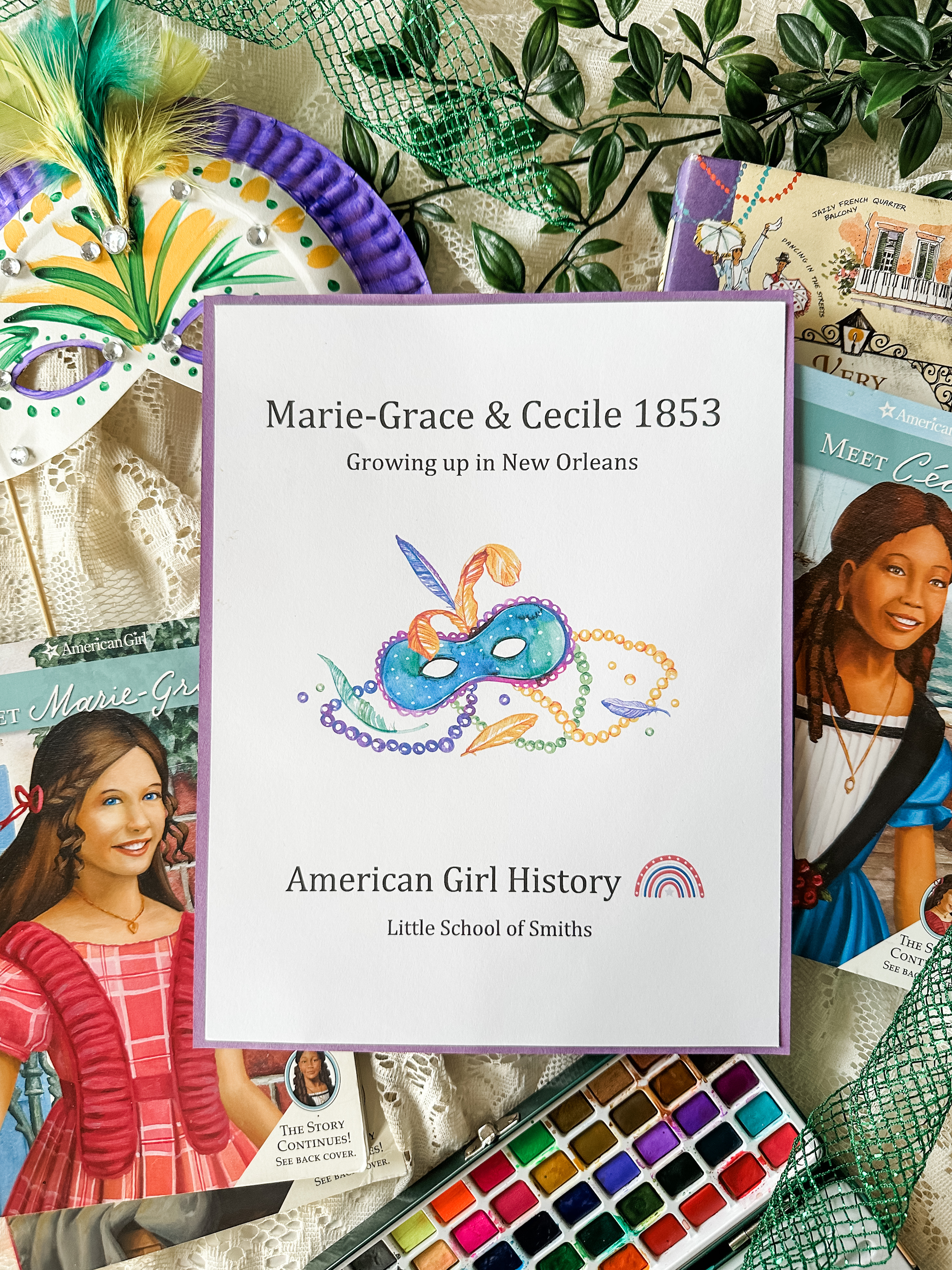 American Girl History with Marie-Grace & Cecile is a 4-week study learning what it was like to live in New Orleans in 1853. You will learn all about the history of Louisiana and the French Quarter, Mardi Gras, health & medicine in 1853, and more!